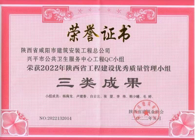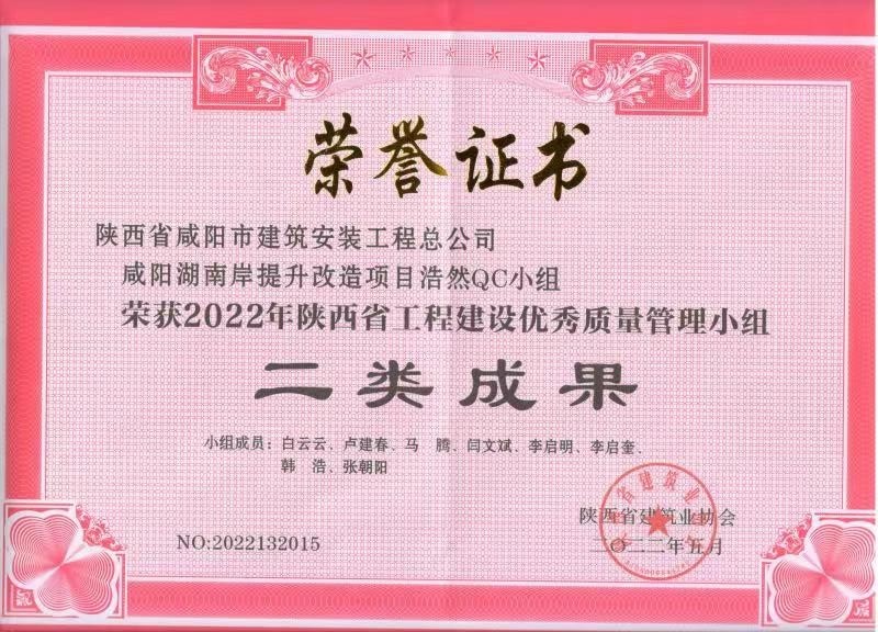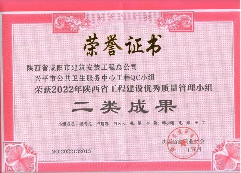 上一篇:2024年度咸陽市建設工程“秦陽杯”榮譽證書